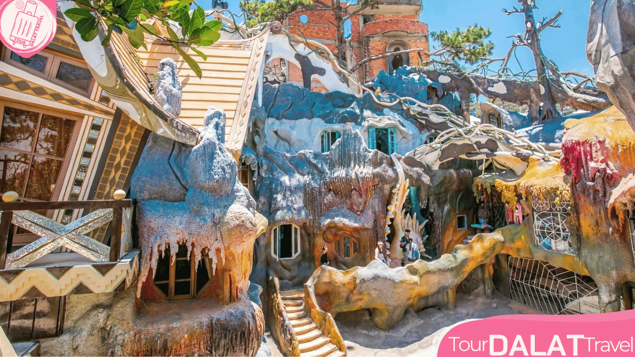 Crazy House – Biệt thự Hằng Nga – địa điểm lọt top 10 công trình kỳ lạ nhất thế giới. Những bức tường uốn lượn, cầu thang ngoằn ngoèo, mái vòm chằng chịt và từng góc nhỏ đều được thổi hồn bằng trí tưởng tượng táo bạo. Chính sự “điên rồ” trong thiết kế đã khiến Crazy House , trở thành biểu tượng độc đáo của Đà Lạt.