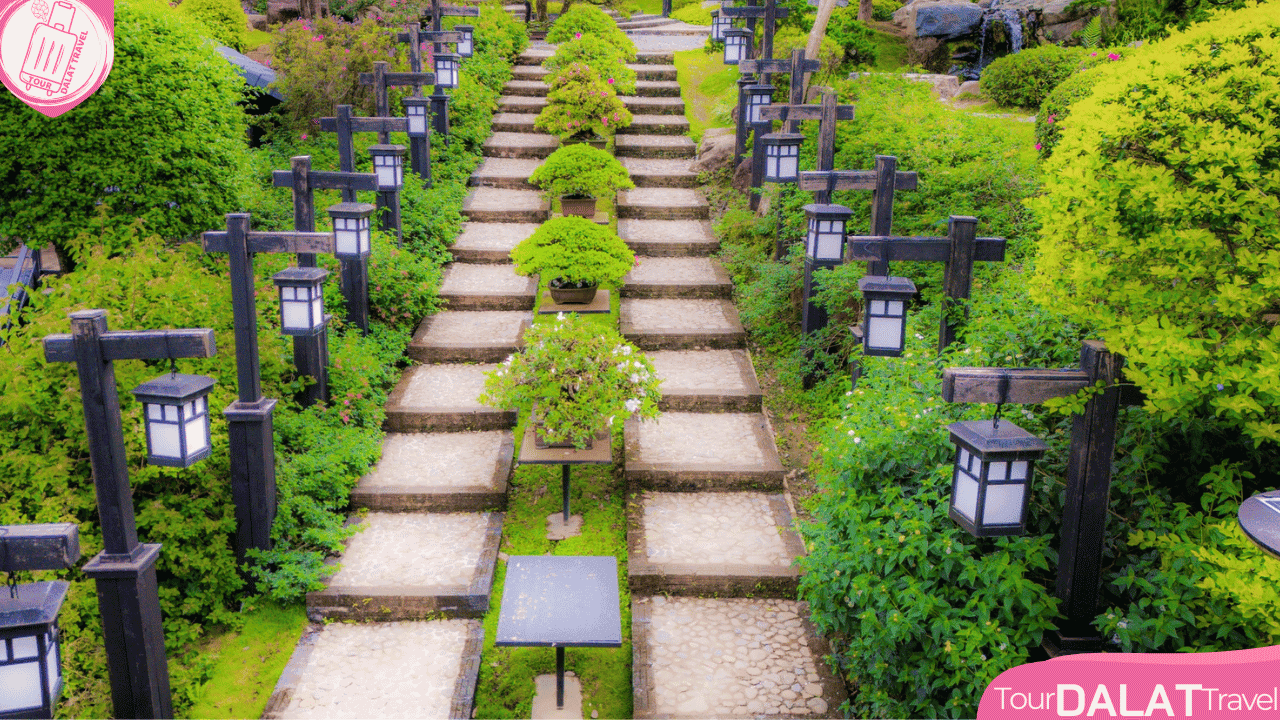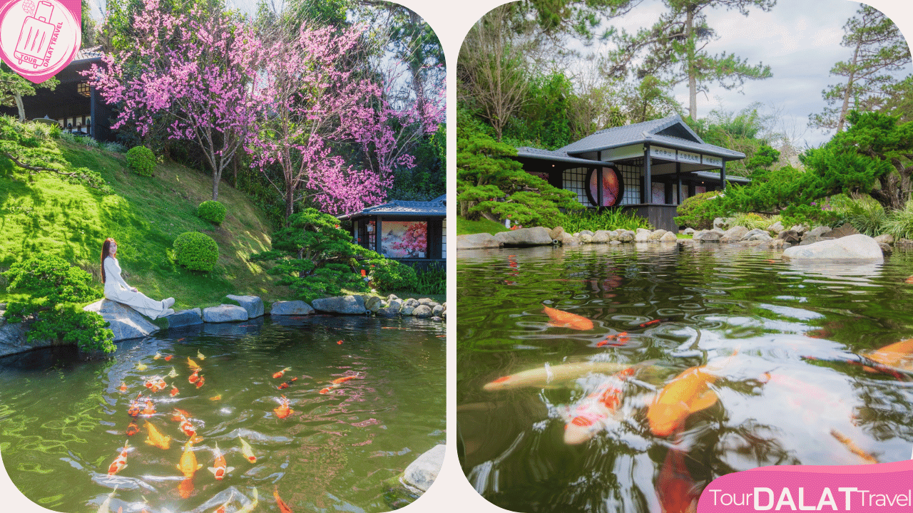 Đặt chân đến Quê Garden Đà Lạt, bạn sẽ có cảm giác như vừa lạc vào một góc nhỏ của Kyoto – nơi có không gian yên bình, hồ cá Koi, vườn bonsai lá kim được chăm sóc tỉ mỉ. Nơi bạn có thể tận hưởng trọn vẹn nét đẹp tinh tế của Nhật Bản ngay giữa lòng Đà Lạt. Quê Garden không chỉ là điểm check-in siêu hot với hàng ngàn góc chụp “chuẩn Nhật”, mà còn là nơi giúp bạn tìm lại sự bình yên sau những ngày dài bận rộn.