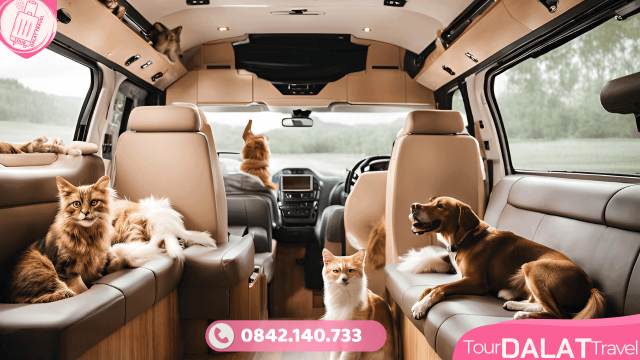 Tour Đà Lạt Travel vận chuyển các bé thú cưng bằng xe Limousine, có ghế ngồi thoải mái rộng rãi và sạch sẽ, có nhân viên hỗ trợ theo sát chăm sóc và trông nom các bạn thú cưng cẩn thận.